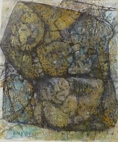 „Nach der (alchemististen) Vier-Elemente-Lehre besteht alles Sein aus den vier „Essenzen“ Feuer, Wasser, Luft und Erde. Diese sind nicht statisch, sondern unterliegen der ständigen Änderung und Umwandlung und stehen in einer zeugenden und zehrenden Beziehung zueinander. In experimenteller Weise lasse ich verschiedene Elemente aufeinander wirken. Durch Bearbeitung, aber auch durch Umwelteinflüsse bilden sich neue Formen. Stoffe werden verformt, zerbrochen, abgetragen und aufgeschichtet.“